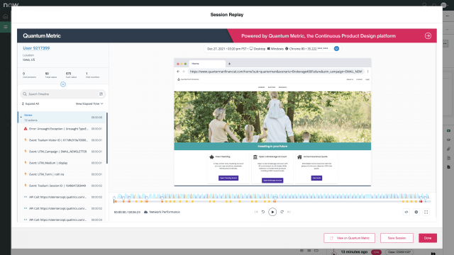 Quantum Metric Embedded Replay for ServiceNow® enables enterprises to provide better customer support, quickly resolve customer frustrations, minimize risk and deliver better experiences without ever leaving the ServiceNow® platform.